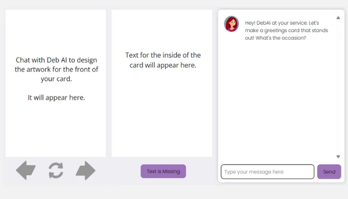 Dedicated AI Assistants: Meet the team of AI assistants, led by Deborah (DebAI) and Maestro. DebAI specializes in crafting heartfelt messages, ensuring that each card carries a meaningful and emotional touch. Maestro is the artistic AI assistant, responsible for creating stunning designs that complement the message perfectly.