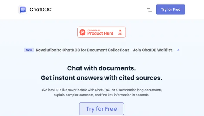 This isn't just a tool; it's a revolutionary leap forward, simplifying the way we interact with written content. With the ability to handle PDFs, DOCs, scans, and more, it acts as an intelligent filter, summarizing dense documents and clarifying intricate topics on command. Imagine being able to ask your file a question and receive an instant, pinpoint answer — ChatDOC makes it a reality.