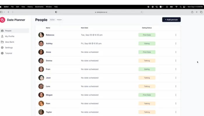 Effortless Date Management: Juggling multiple dates can be a challenge, but Date Planner simplifies the process with its intuitive Dating Dashboard. This mobile-friendly tool allows you to easily manage your dating life. Keep track of each person's interests, personalized date ideas, conversation topics, and any important notes. Stay organized and attentive, ensuring that every date is unique and leaves a lasting impression.