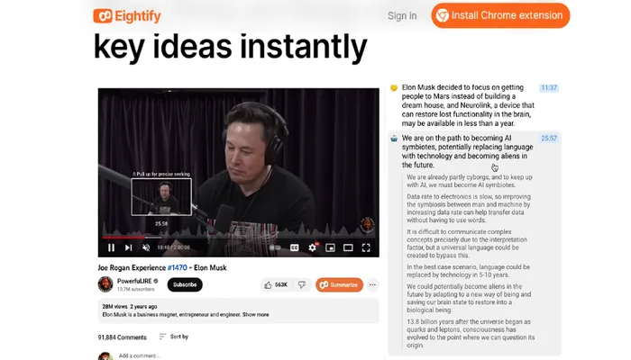 Eightify is not just a platform; it's a revolutionary tool designed to upgrade your online learning experience. The platform specializes in condensing extensive videos into digestible, easily accessible summaries that allow you to grasp the key points in moments.