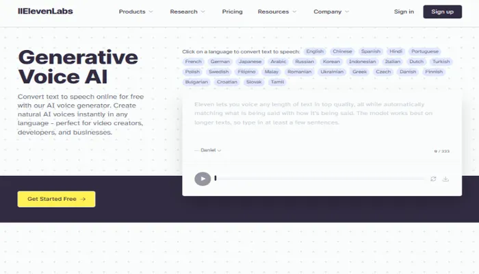 Lifelike AI Voices in 29 Languages: Eleven Labs supports an extensive range of languages, ensuring that your content can reach a global audience with natural, native-speaking voices.
