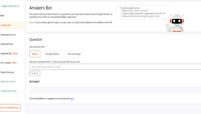 Error Spotter and Formula Explanations: Identify and resolve errors in Excel, Google Sheets, and SQL code, with the added benefit of clear explanations for how formulas work.