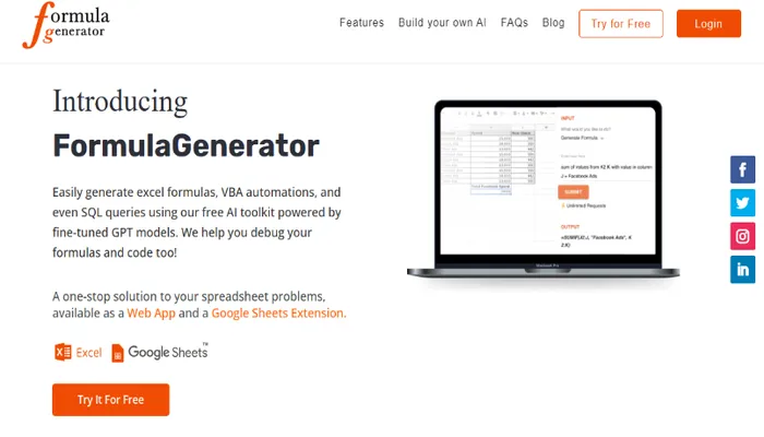 The tool provides a comprehensive range of features intended to meet a variety of needs, from creating Excel formulas to generating SQL code. Whether you're experienced or new to spreadsheets, Formula Generator is designed to help you manage your tasks more effectively.