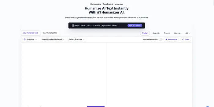 AISEO Humanize‑AI transforms AI-generated drafts into fluent, human-style text in seconds. From single sentences to full articles, it analyzes syntax, tone, and vocabulary to reconstruct passages that enhance readability while preserving original meaning. Choose from modes like Standard, Shorten, Expand, Simplify, or Improve Writing to tailor output to your needs. All text is processed via a secure browser interface and deleted afterward to ensure privacy. Free usage tiers include limited word counts, with scalable paid plans and API access available for higher volumes and integration needs.
