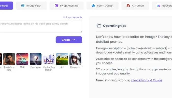 Why limit yourself to plain text when you can turn your words into compelling visuals? The Text-to-Image Conversion isn't just a feature—it's an experience. Input a brief text prompt and watch as the advanced algorithms conjure a spectrum of image styles, ranging from strikingly realistic depictions to whimsical fantasy scenes.