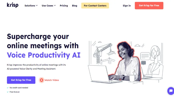 Krisp stands as an indispensable tool in today's digital age, providing an integrated, AI-driven platform designed to enhance your online communication experiences. The software seamlessly acts as a smart layer between your device and virtually any online meeting tool, ensuring you can enjoy noise-free, crisp conversations without any disruptions.
