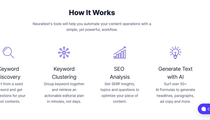 Keyword Discovery and Clustering: Neuraltext’s keyword discovery feature goes beyond mere keyword suggestions. It dives into a deep pool of data to bring out long-tail keywords and semantic variations, which are then intelligently clustered. This clustering helps content strategists target topic clusters, ensuring comprehensive coverage of a subject, which is essential for voice search optimization and establishing domain authority.
