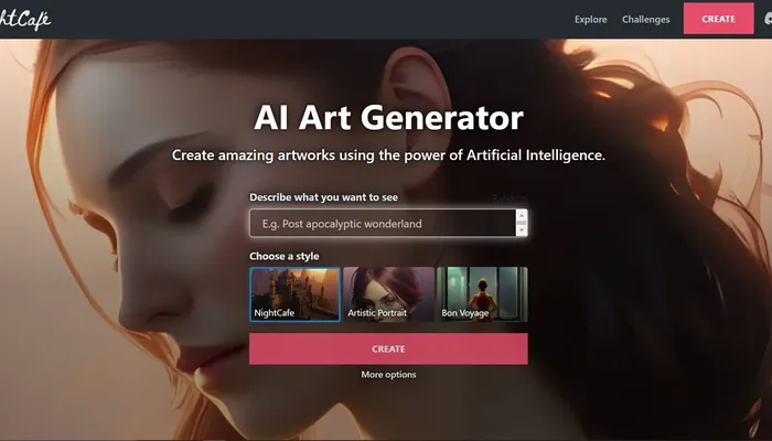 NightCafe offers a platform for users to explore AI-generated art with a range of powerful tools. It combines models like Stable Diffusion, DALL-E 2, and VQGAN+CLIP to help users create art from text prompts or photos. Whether you’re a casual user looking to experiment with AI art or someone more serious about digital creativity, NightCafe provides accessible features to get started. The platform includes a community aspect, where users can share work, participate in challenges, and interact with others.