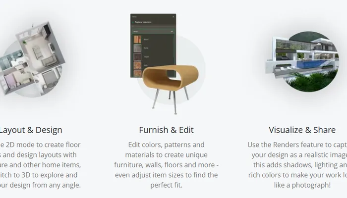 Another feature is the massive catalog of over 5000 items ensuring you never run out of options, whether you’re looking for modern, traditional, or eclectic styles. One of the standout attributes is the Renders feature. It generates high-definition visualizations of your design, complete with realistic shadows, lighting, and rich colors. These aren't just lifeless screenshots; they are vibrant, photorealistic images that you can use for presentations, social sharing, or personal inspiration.