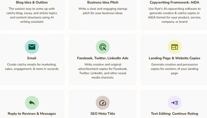 Emails: Whether it's marketing emails, sales pitches, or engagement emails, Rytr can generate catchy and effective email content in seconds.