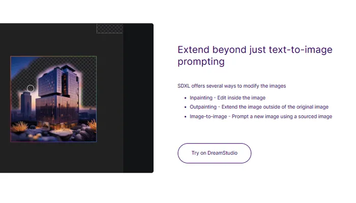 Prompt Modification: Enjoy unmatched flexibility with inpainting and outpainting options. Whether it's modifying the details within an image (inpainting) or expanding the visual canvas beyond the original (outpainting), you have total control.