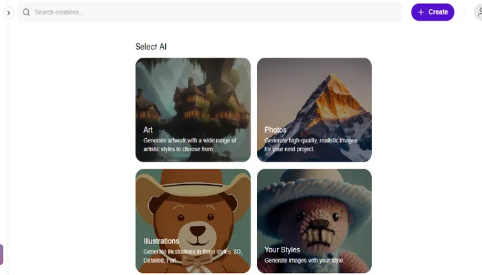 Versatile AI Methods: Choose from four AI methods—Art, Photos, Illustrations, or Custom Styles—to create a wide variety of visual content.