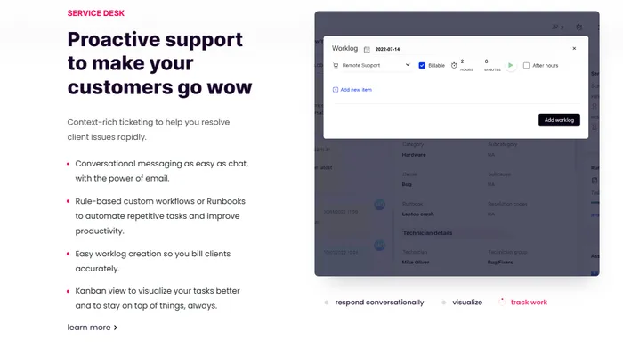 Intuitive Service Desk: Dive into a user-friendly service desk environment designed to bolster client engagement and streamline service operations, fostering growth and revenue opportunities for MSPs.