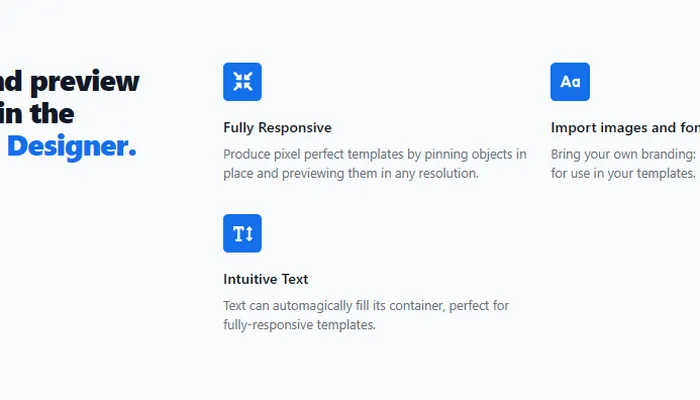 Intuitive Text Handling: Text elements automatically adjust to fit their containers, making fully responsive templates a breeze to create.