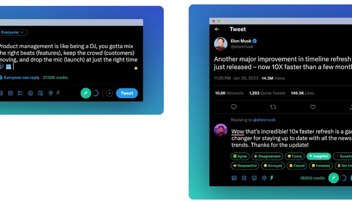 Tonal Versatility in Replies: With over 20 tones to choose from, your replies on Twitter will reflect the exact mood or intellectual stance you aim to convey, making each interaction unique.