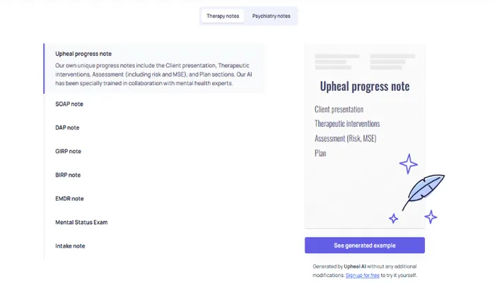 Upheal addresses one of the most time-consuming and often daunting tasks faced by therapists: progress notes. With this AI tool, therapists can say goodbye to the hours spent meticulously documenting each session. This AI-driven technology allows therapists to generate progress notes with astonishing speed and precision, reducing note-taking time by up to 90%. This newfound efficiency not only liberates therapists from administrative burdens but also allows them to focus more on what truly matters – their clients.