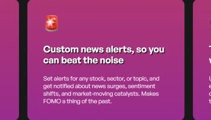 Portfolio Management: You no longer need to comb through endless streams of information to stay updated on the stocks and sectors you care about. The platform serves curated, high-impact news directly to you, simplifying portfolio management.