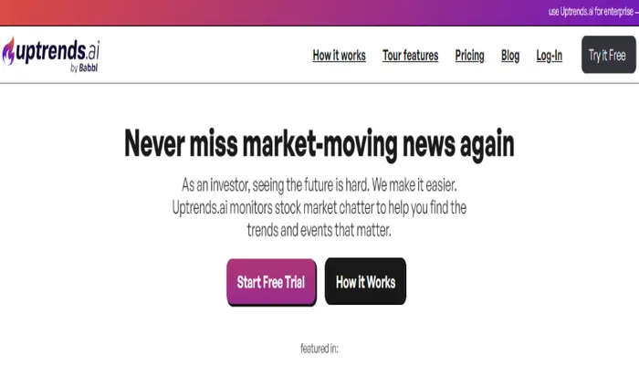 In the fast-paced world of stock trading, where information is currency, traditional methods of staying informed are rapidly becoming obsolete. That's where Uptrends AI comes into play—a groundbreaking platform designed to automate the grunt work and deliver market-moving insights straight to your dashboard. Leveraging state-of-the-art machine learning algorithms and natural language processing, they scan thousands of global news outlets, financial blogs, and social media platforms every second of every day.