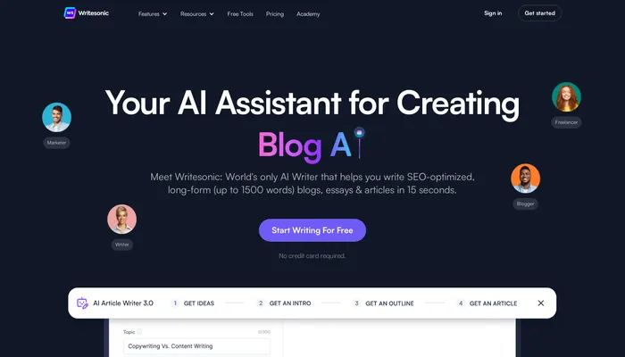 Welcome to Writesonic, your ultimate AI-powered content creation solution! This AI tool specializes in revolutionizing content marketing strategies by leveraging cutting-edge artificial intelligence. Whether you're an entrepreneur, marketer, or writer, this suite of AI tools empowers you to generate high-quality articles, blogs, landing pages, Google ads, Facebook ads, emails, and much more in mere seconds. This software taps into a vast database of top-performing copy from leading brands, ensuring that content resonates with your target audience.